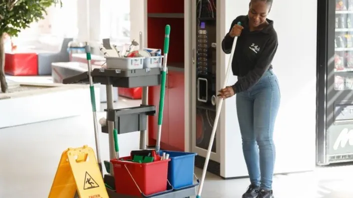 ‘Die aanpak om de vloer te reinigen is niet handig, Kevin. Als je nu eens hier begint, eindig je straks op een veel logischer plek.’ Objectleider Jolanda van schoonmaakbedrijf Gom neemt ‘Kevin’ - niet zijn echte naam - even apart voor een korte uitleg over een slimmere werkmethodiek. Daar is in de hectiek van de schoonmaakwerkzaamheden alle tijd voor. Kevin is ook geen medewerker bij Gom, maar student aan Albeda, Dienstverlening op mbo niveau 2. Dat hij bij Gom aan de slag is, is het resultaat van een compleet nieuw onderwijsconcept: de praktijkroute. Deze opleiding volgt Kevin zonder ooit nog een schoolgebouw van binnen te zien.