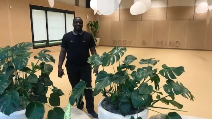 Het is ’s morgens vroeg al een drukte van belang bij Sport en Cultuur. ‘Het werk begint voor ons om zes uur. Vanaf zeven uur zijn bezoekers welkom. En dat loopt door tot één uur in de nacht, zeven dagen per week. Maar voor ons is de periode tussen zes en tien uur ’s morgens spitstijd. Dan moeten de sportzalen, de kleedkamers en het café schoon zijn. Alles moet tegelijk klaar. Gelukkig heb ik hier een heel fijn team, met twee goede leidinggevenden: Silvia en Lara’, zegt Asah iets na tien uur, als de ergste hectiek achter de rug is.
