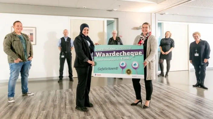 Ze was zo enorm verrast dat ze even moest bijkomen van de schrik. Business unit directeur Simone van de Velde kon haar vertellen waarom ze haar op stonden te wachten; Yamina is uitgeroepen tot Gom Uitblinker van kwartaal 3-2020. Haar leidinggevende Thijs Jonkheer had haar genomineerd en had samen met verschillende directe collega’s voor de jury videoboodschappen opgenomen om te laten weten waarom zij vinden dat Yamina de titel verdient.