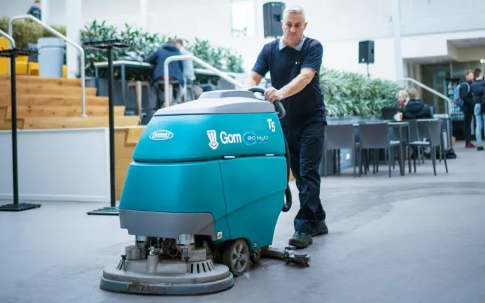 Al sinds 2008 is Gom actief om de vloot van - inmiddels - 1.200 schrobzuigmachines te vervangen door alternatieven die milieuvriendelijker zijn. Opvallend detail: een lager verbruik van water en vooral chemie gaat gelijk op met een betere kwaliteit van de schoonmaak, weet Vincent Gielen. ‘In chemische middelen zitten conserveringsmiddelen en geur- en kleurstoffen die altijd een laagje op de vloer achterlaten. Gaan we op die vloer over op chemievrije schoonmaak, dan merken schoonmakers dat het water eerst enorm gaat schuimen. Dat komt door het laagje dat nog op de vloer aanwezig is.’